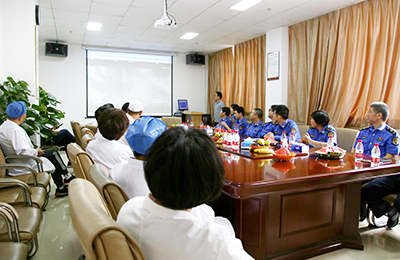 随后,上海中大肿瘤医院院领导发言,感谢虹口城管江湾中队的信任和支持,并向大家重点介绍了我院党组织架构、党员管理、医资力量以及学科建设等方面的内容。他表示,我院将一直坚持“突出专科,统筹发展”的管理思路,深入开展各项共建联建活动,在绿色通道、科普讲座、健康体检等方面开展多方位探索合作,切实服务好周边区域的百姓。