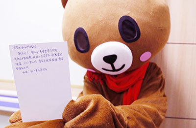 一个个红彤彤的苹果,寓意着平安吉祥;一张张医护人员们亲手写的贺卡,书写着一句句美好真切的祝福。打扮成卡通熊的小姐姐为一位位患者送上我们准备的小礼物,这都是我们用体贴的行动带给患者们感动的体验。